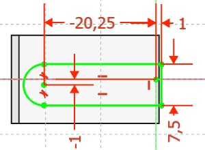 - Hinweis: Wenn das Maß X3,75 unterschritten wird, scheitert das nachfolgende Entfernen des Anschliffes, weil ein schmaler Streifen stehen bleibt und FreeCAD nicht mit 2 getrennten Teilkörpern umgehen kann.